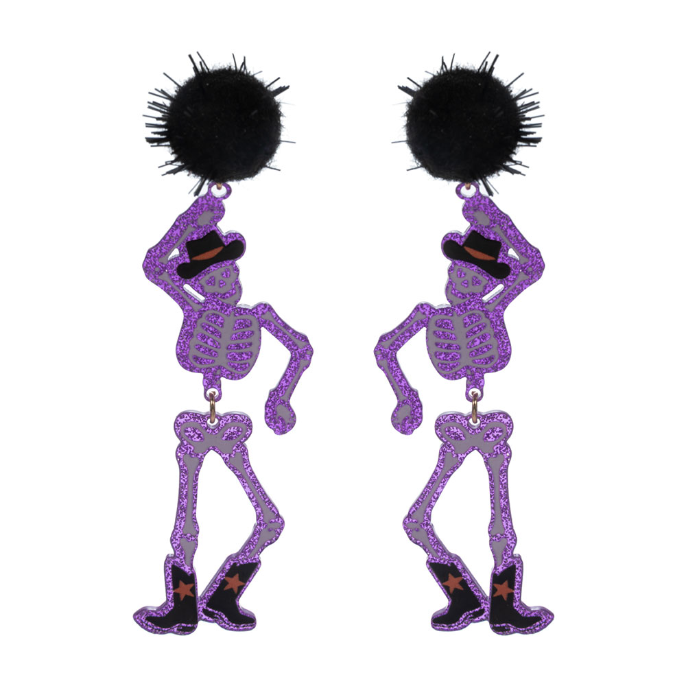 Western Cowboy Halloween Pom Pom Skeleton Earrings Western Cowboy Halloween Pom Pom Skeleton Earrings