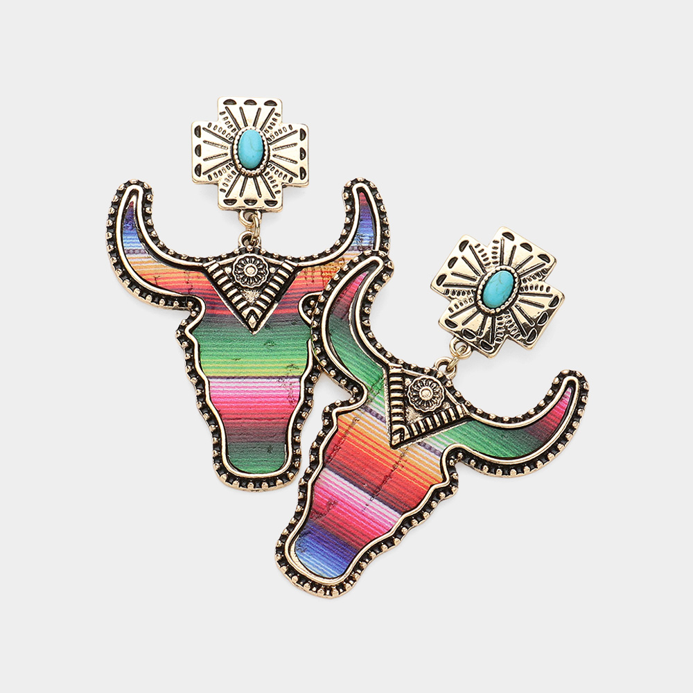Western Rainbow Steer Head Dangle Earrings