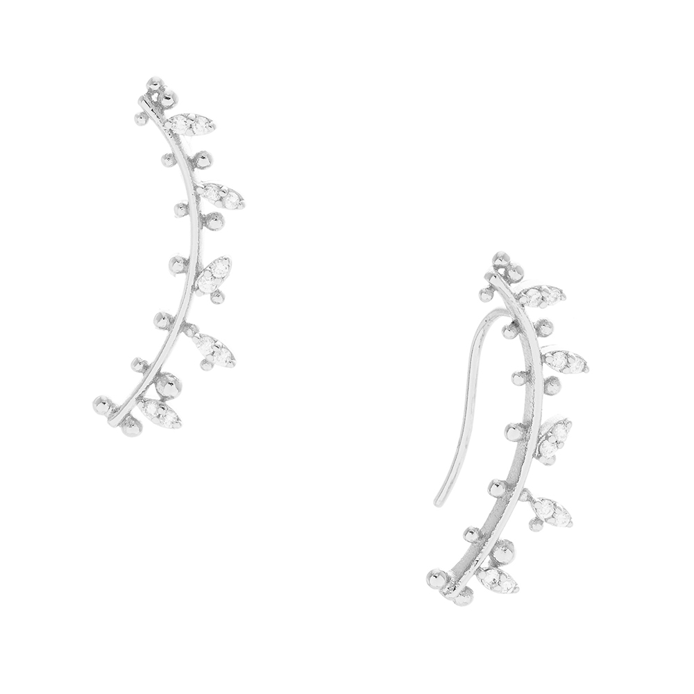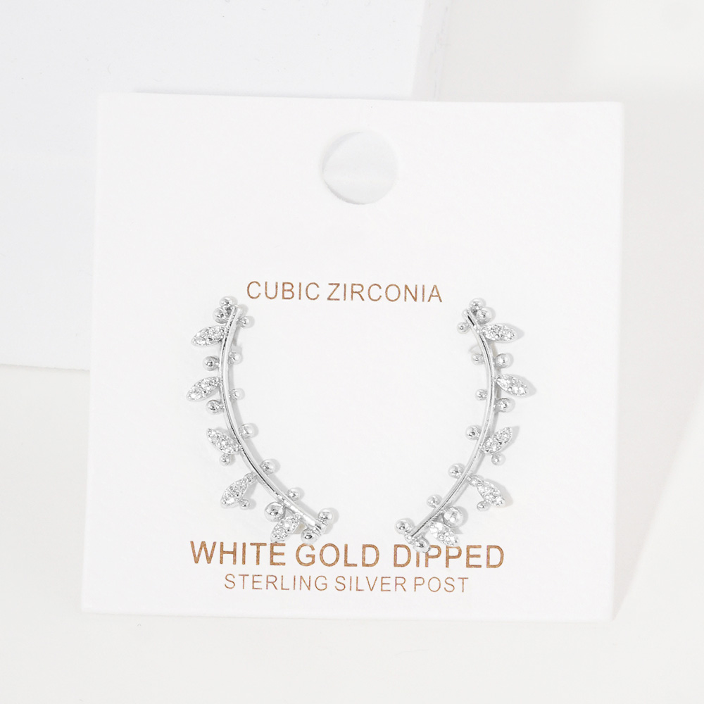 White Gold Dipped Cubic Zirconia Floral Sprout Drop Earrings