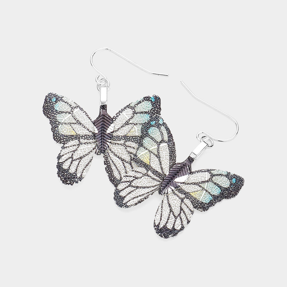 White Gold Dipped Sterling Silver Post Butterfly Earrings
