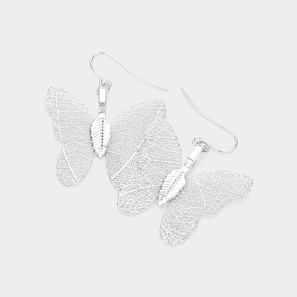 White Gold Dipped Sterling Silver Post Butterfly Earrings