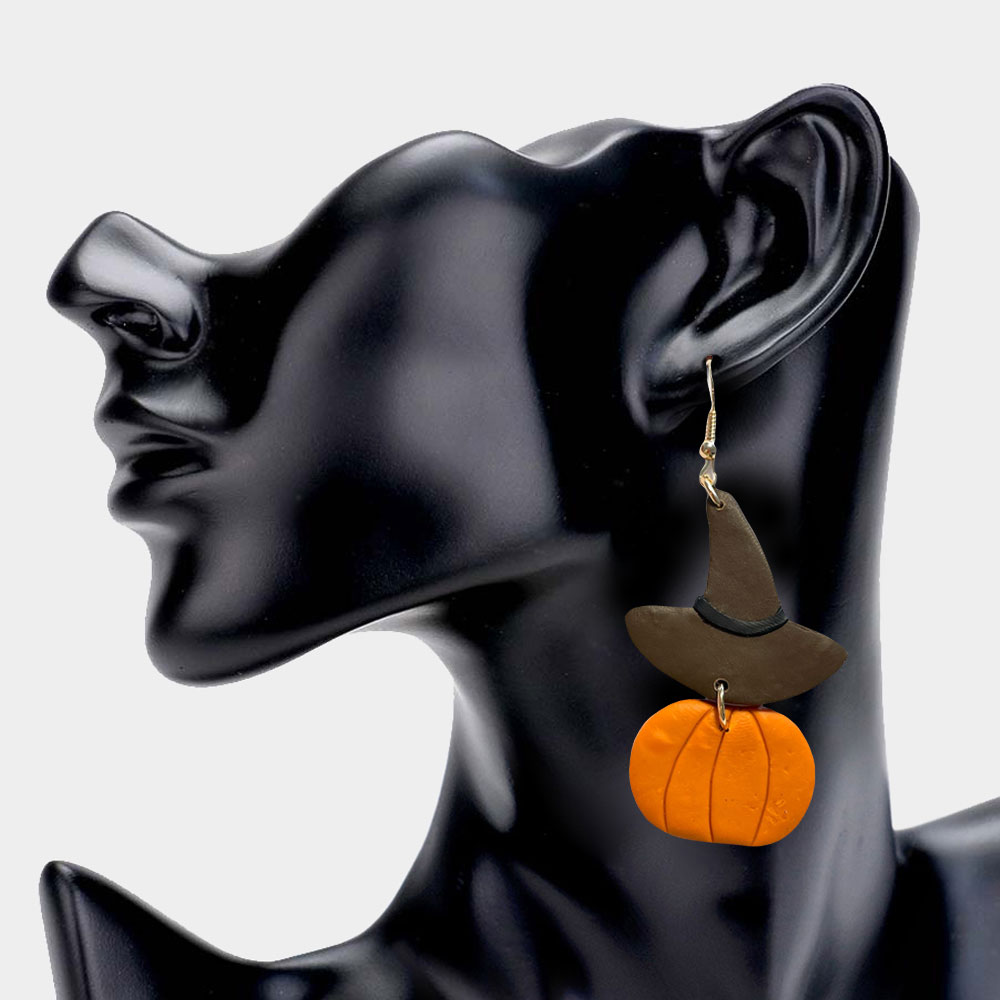 Witch Hat Pumpkin Polymer Clay Dangle Earrings