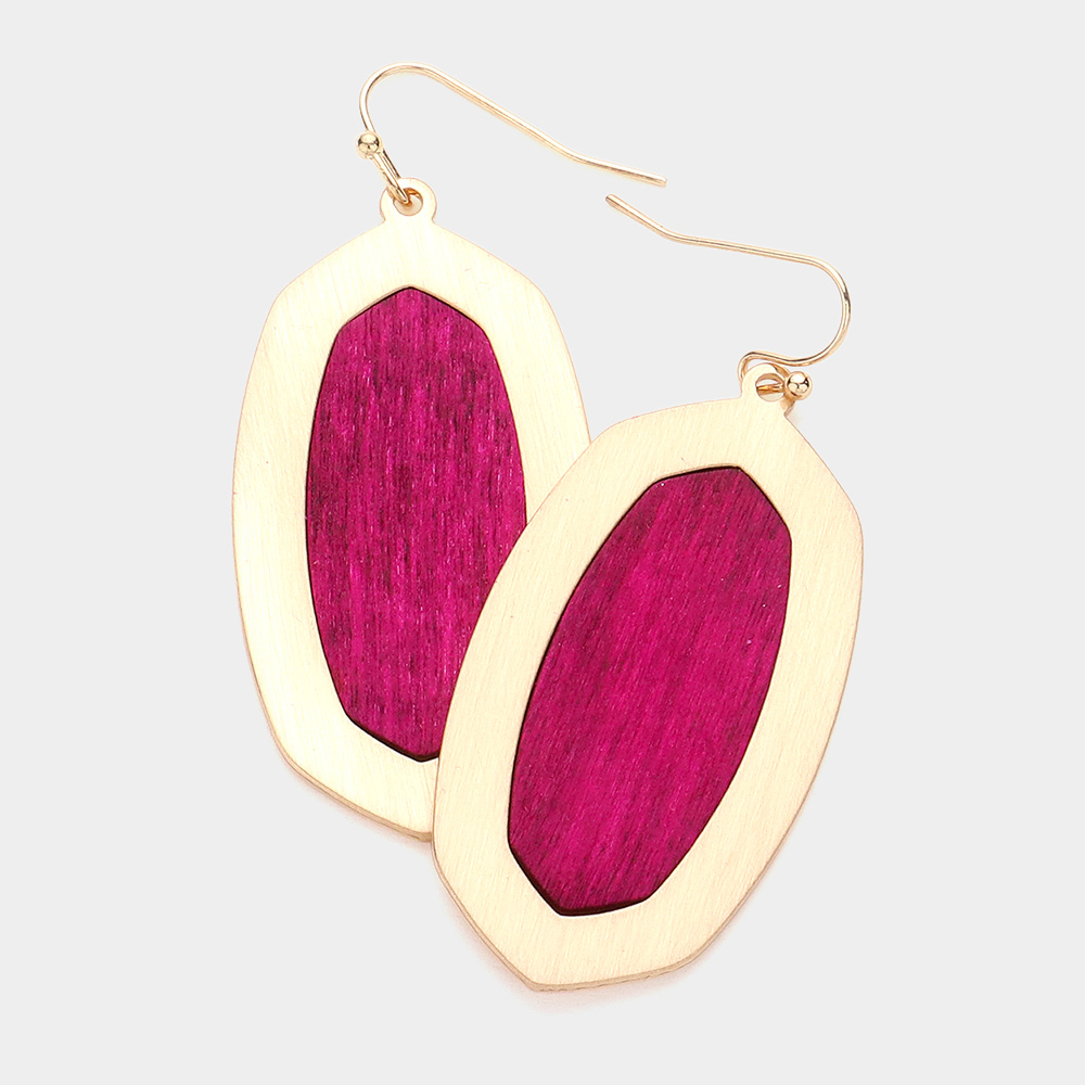 Abstract Textured Metal Wooden Ring Link Dangle Earrings