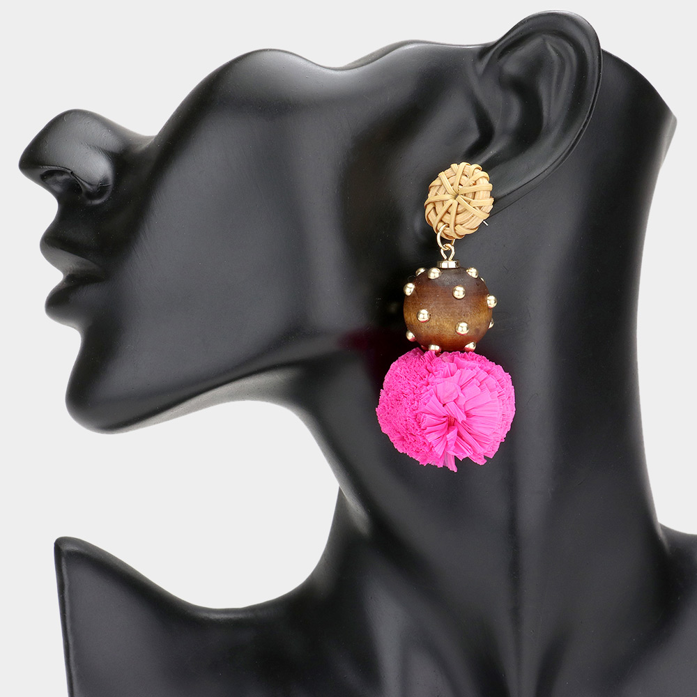 Beaded Flower Teardrop Stone Link Dangle Earrings