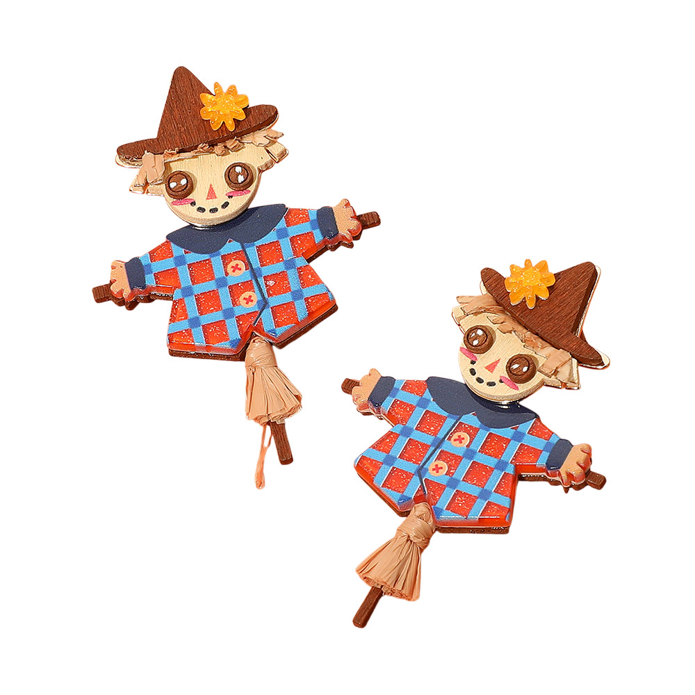 Details • Size : 1.5" X 2.4" • Post Back • Whimsical scarecrow drop earrings designed to celebrate autumn in playful style. Ideal for seasonal events, Thanksgiving, or festive looks, these earrings bring charm and personality to any outfit. • Lead and Nickel Compliant