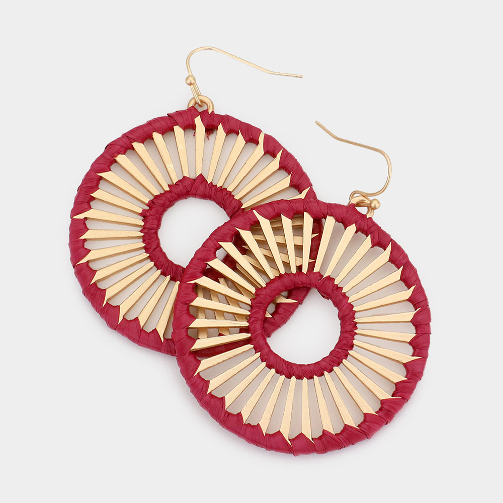 Wrapped Raffia Abstract Metal Circle Dangle Earrings