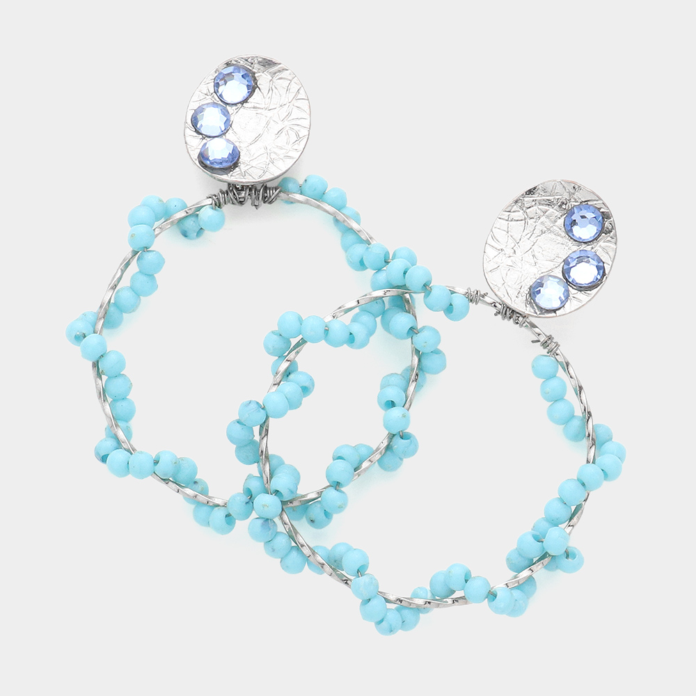 Wrapped Seed Beaded Open Circle Dangle Earrings