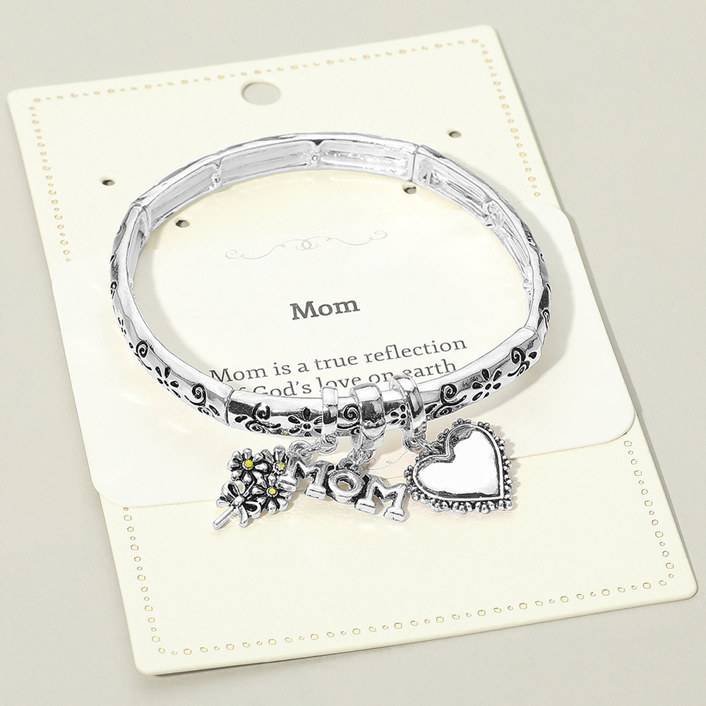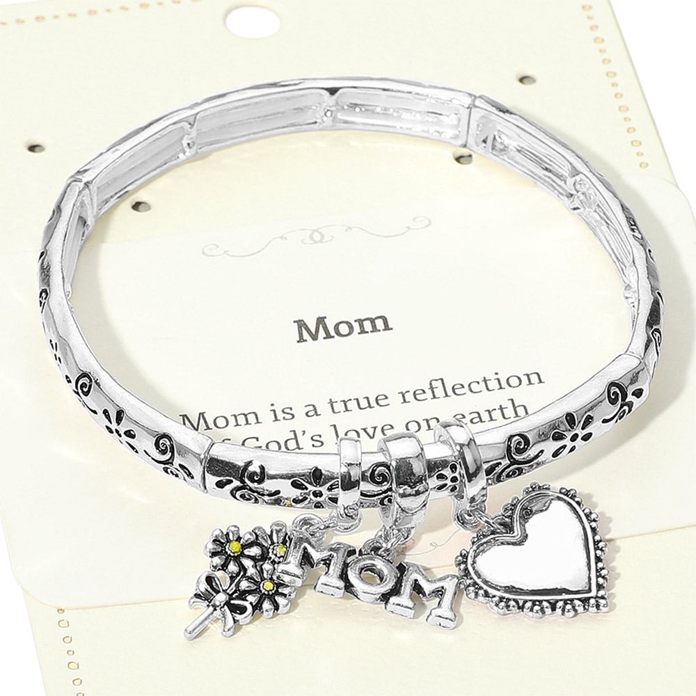 Mom Message Heart Flower Charm Stretch Bracelet Mom Message Heart Flower Charm Stretch Bracelet Mom Message Heart Flower Charm Stretch Bracelet
