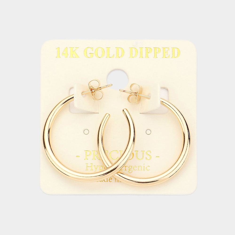 18K Gold Dipped Stainless Steel 3.2 Inch Inside Out Rhinestone Hoop Pin Catch Earrings