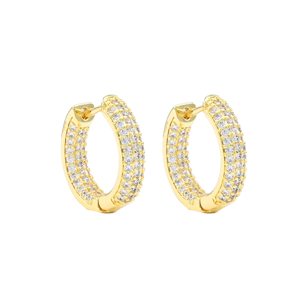 Gold Dipped CZ Stone Paved Hugggie Hoop Earrings