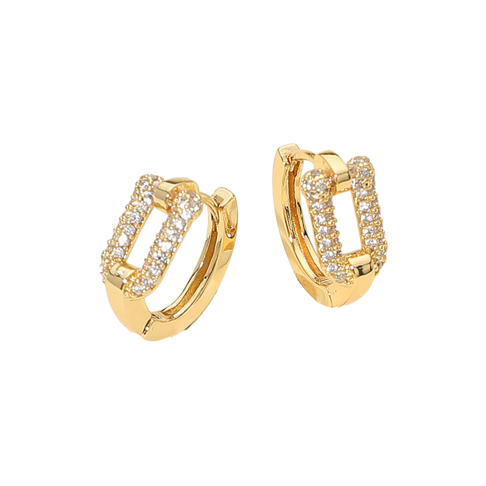Details • Size : 0.7" X 0.6" X 0.3" • Huggie Back • Elegant hoop earrings with a unique rectangular crystal-encrusted design for a modern twist on a classic style. Lightweight and versatile, these hoops add subtle sparkle, making them perfect for everyday wear or evening elegance. A chic accessory to elevate casual looks and complement formal outfits. • Brass • CZ Cubic Zirconia • Gold Dipped • Hypoallergenic • Lead and Nickel Compliant • Made In Korea