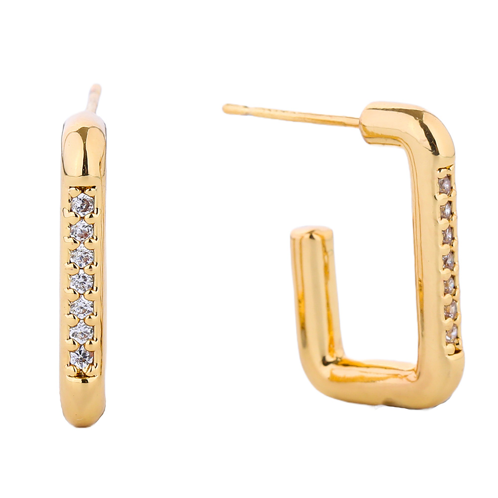 • Chic rectangular hoop earrings adorned with a row of shimmering cubic zirconia. Designed for modern elegance, these lightweight hoops bring refined sparkle, making them ideal for both everyday style and special occasions.