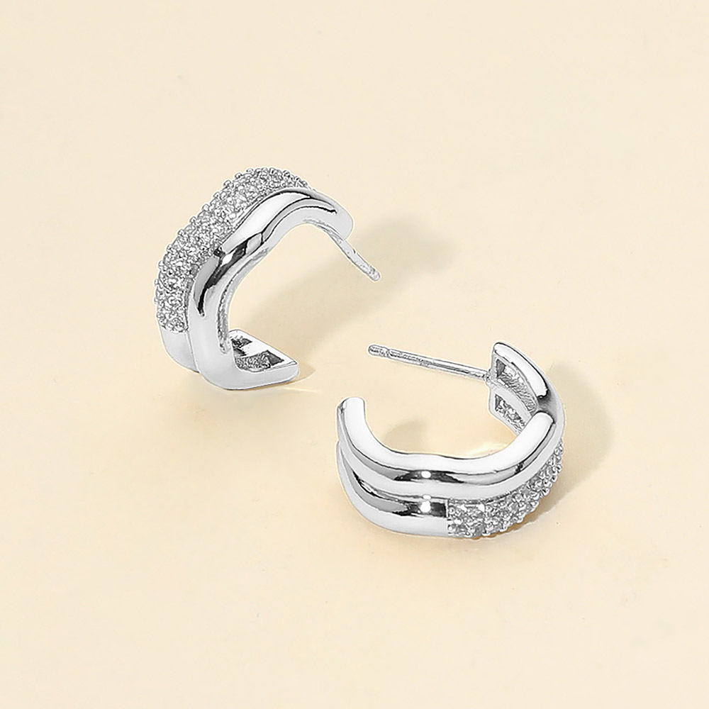 • Chic hoop earrings featuring a layered silhouette accented with shimmering pave details. A stylish blend of bold structure and refined sparkle, these earrings are perfect for elevating casual looks or adding polish to evening outfits.