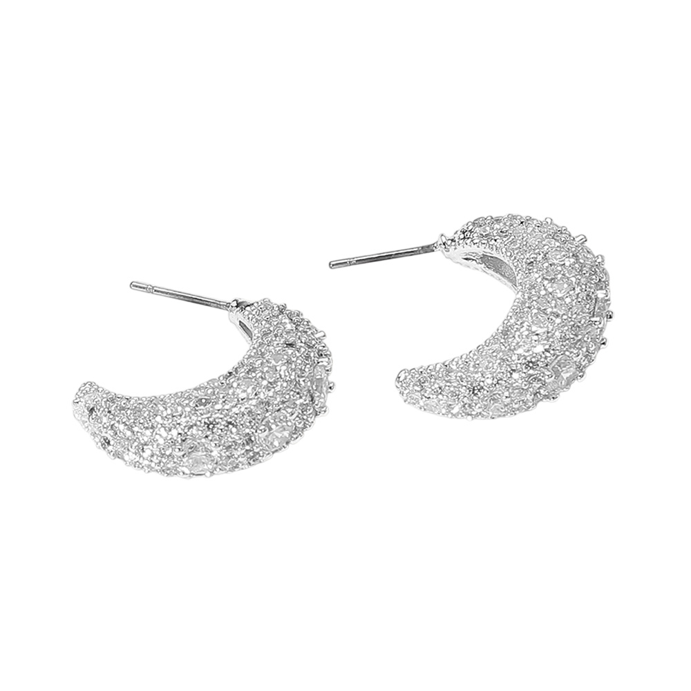 14K Gold Plated CZ Stone Paved Hoop Earrings