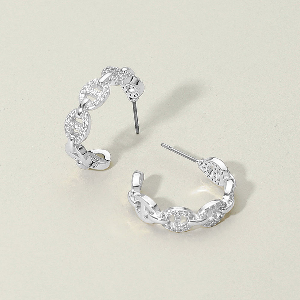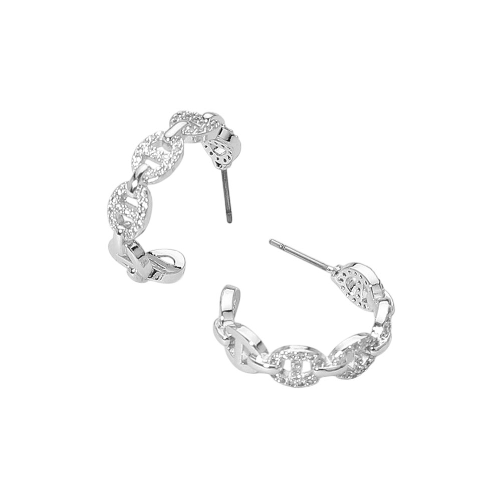 • Elevate your everyday style with these mariner chain-link hoop earrings adorned with sparkling crystal accents. Their bold yet elegant design adds a touch of modern sophistication, making them perfect for casual wear, work outfits, or special occasions.