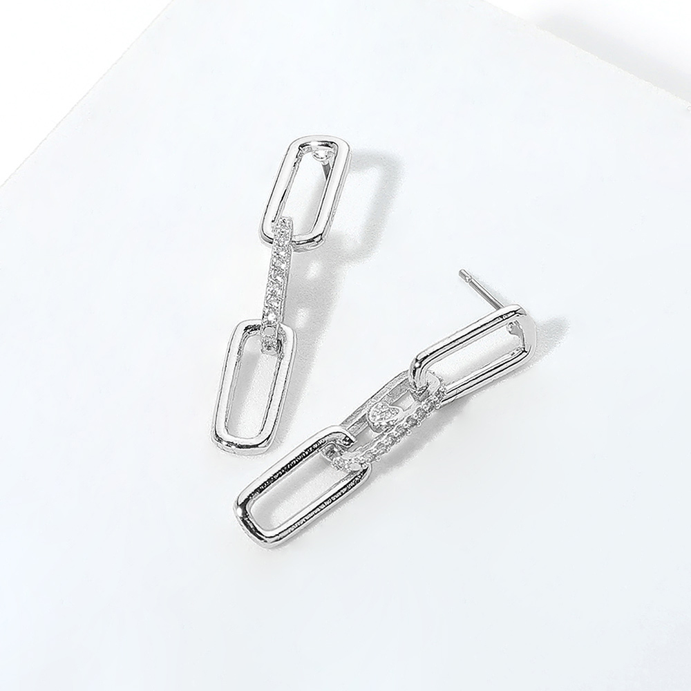14K Gold Plated CZ Stone Paved Paperclip Chain Dropdown Earrings