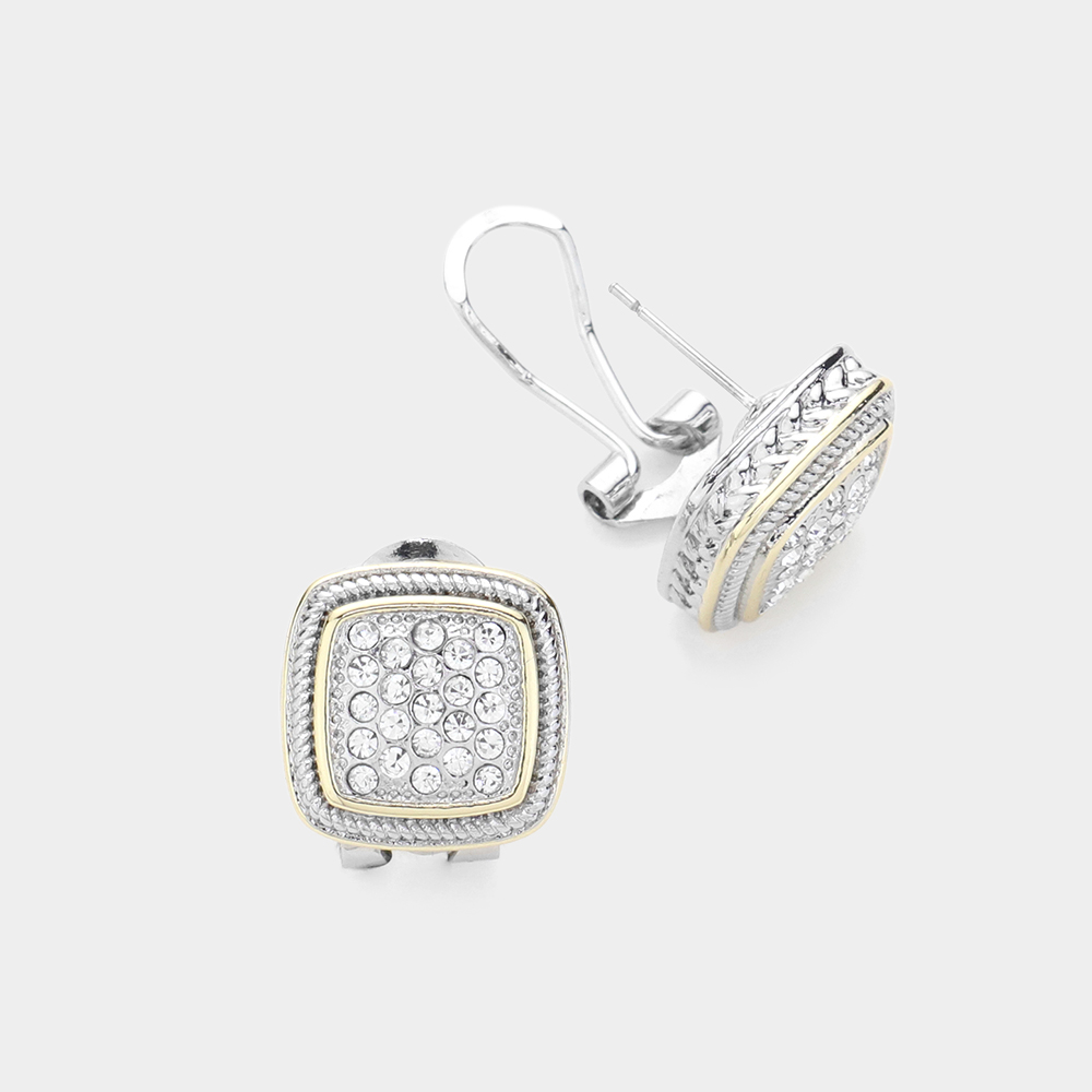 Two Tone CZ Stone Paved Tip Textured Cuff Bracelet