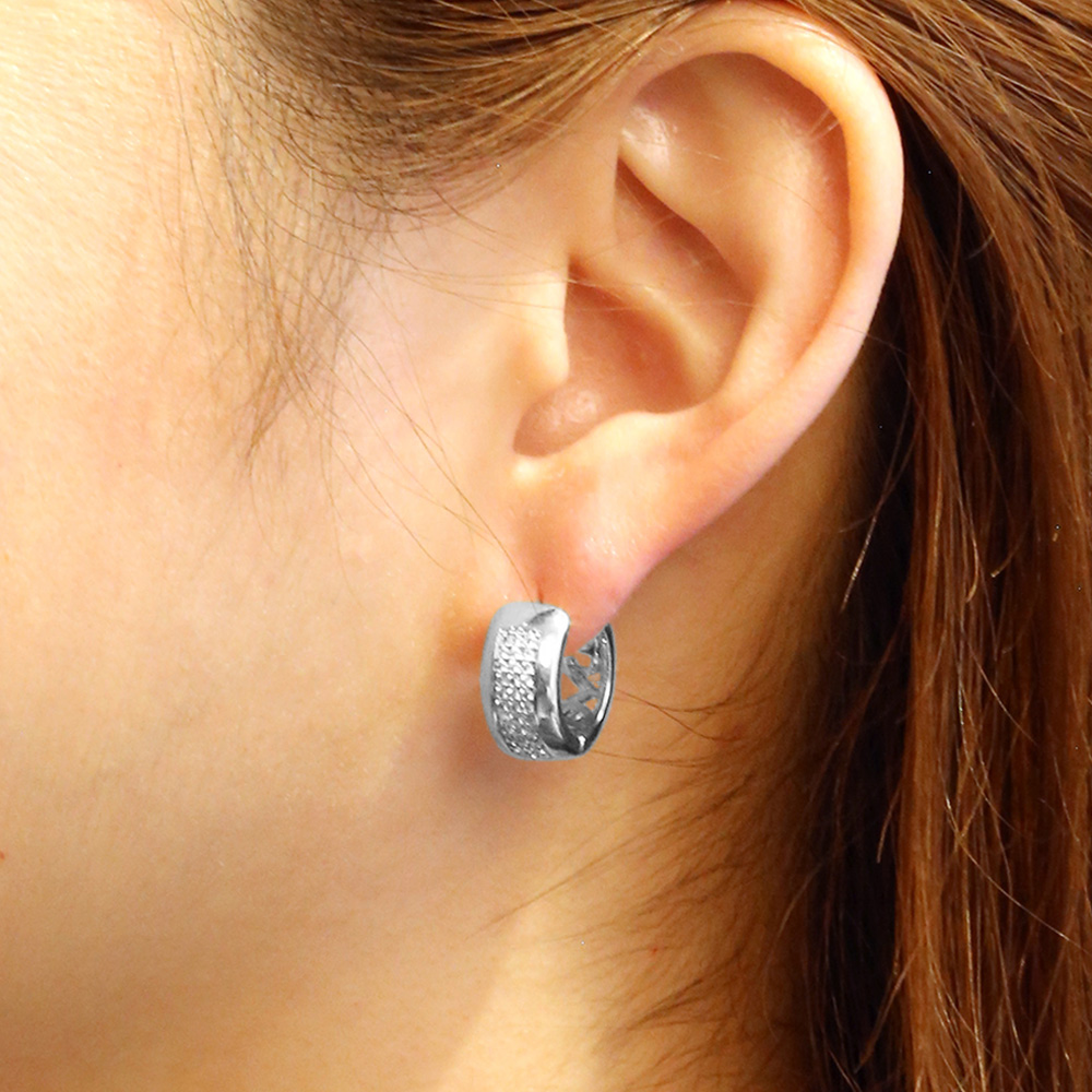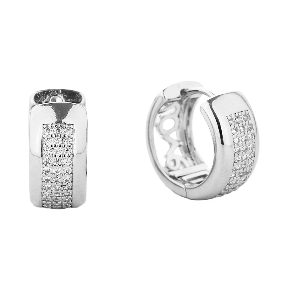 14K White Gold Dipped CZ Paved Huggie Hoop Earrings