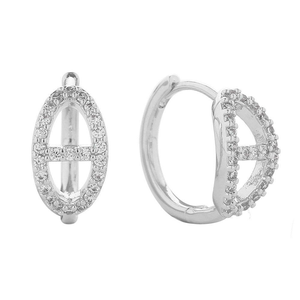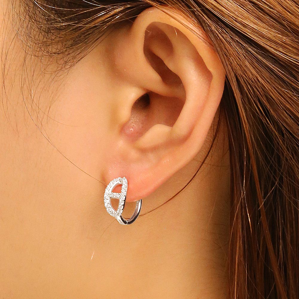 14K White Gold Dipped CZ Stone Paved Farandole Hypoallergenic Huggie Earrings