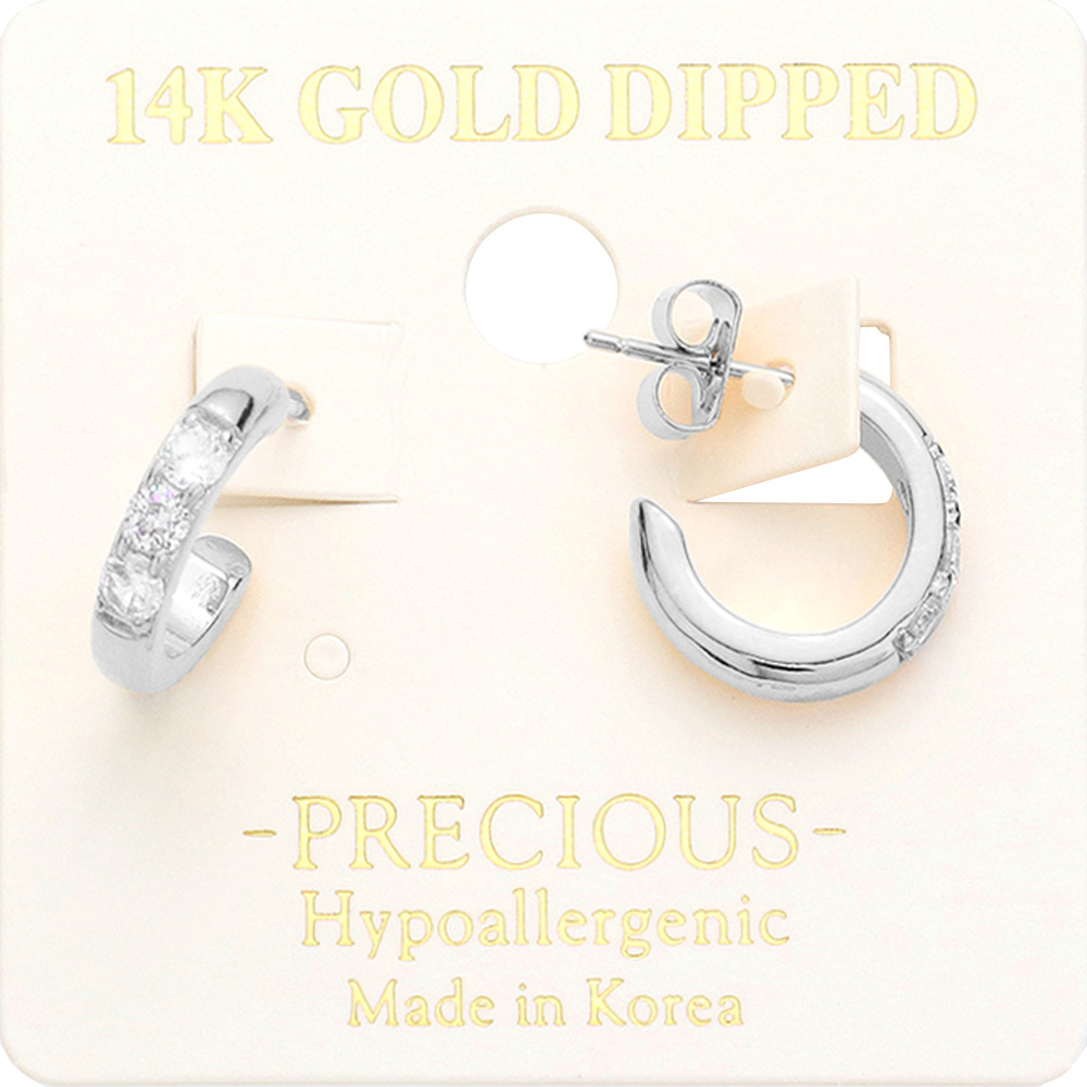 Details • Size : 0.6" X 0.6" • Post Back • Discover timeless elegance with these gold-dipped hoop earrings adorned with sparkling crystal accents. Hypoallergenic and crafted for lasting wear, they offer a perfect blend of sophistication and everyday comfort. Ideal for gifting or elevating your own jewelry collection. • Hypoallergenic • Made In Korea • Gold Dipped
