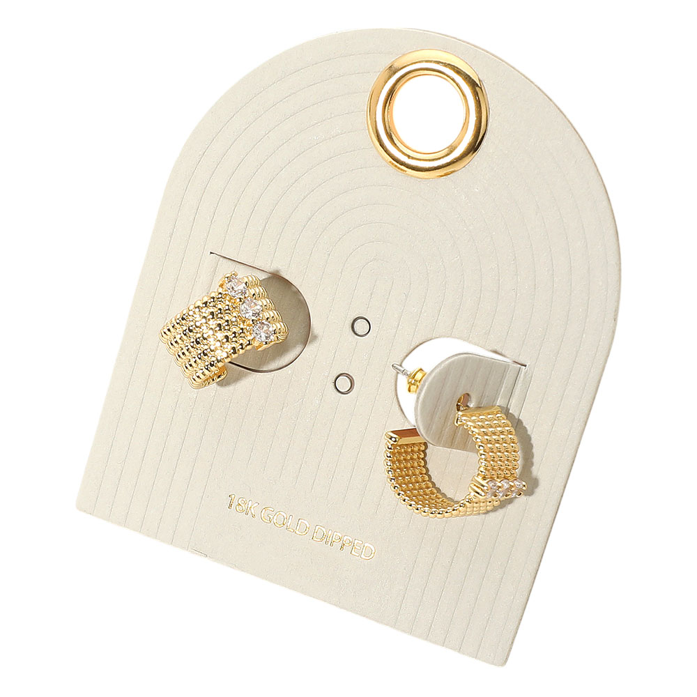 18K Gold Dipped Stone Accent Textured Mini Hoop Earrings