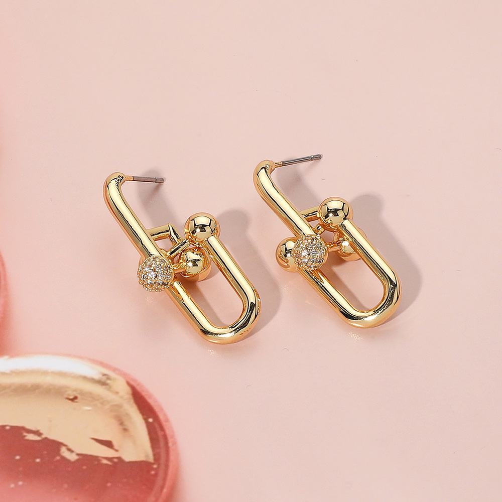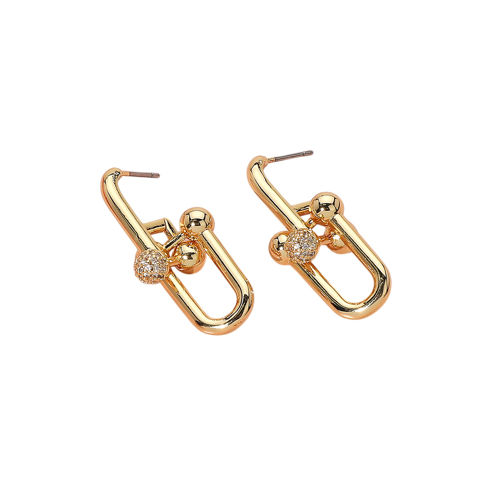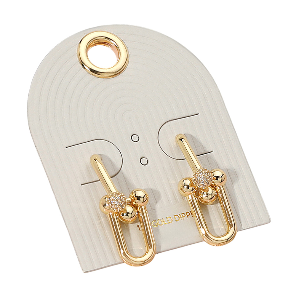 18K Gold Dipped Stone Paved Hardware Link Earrings