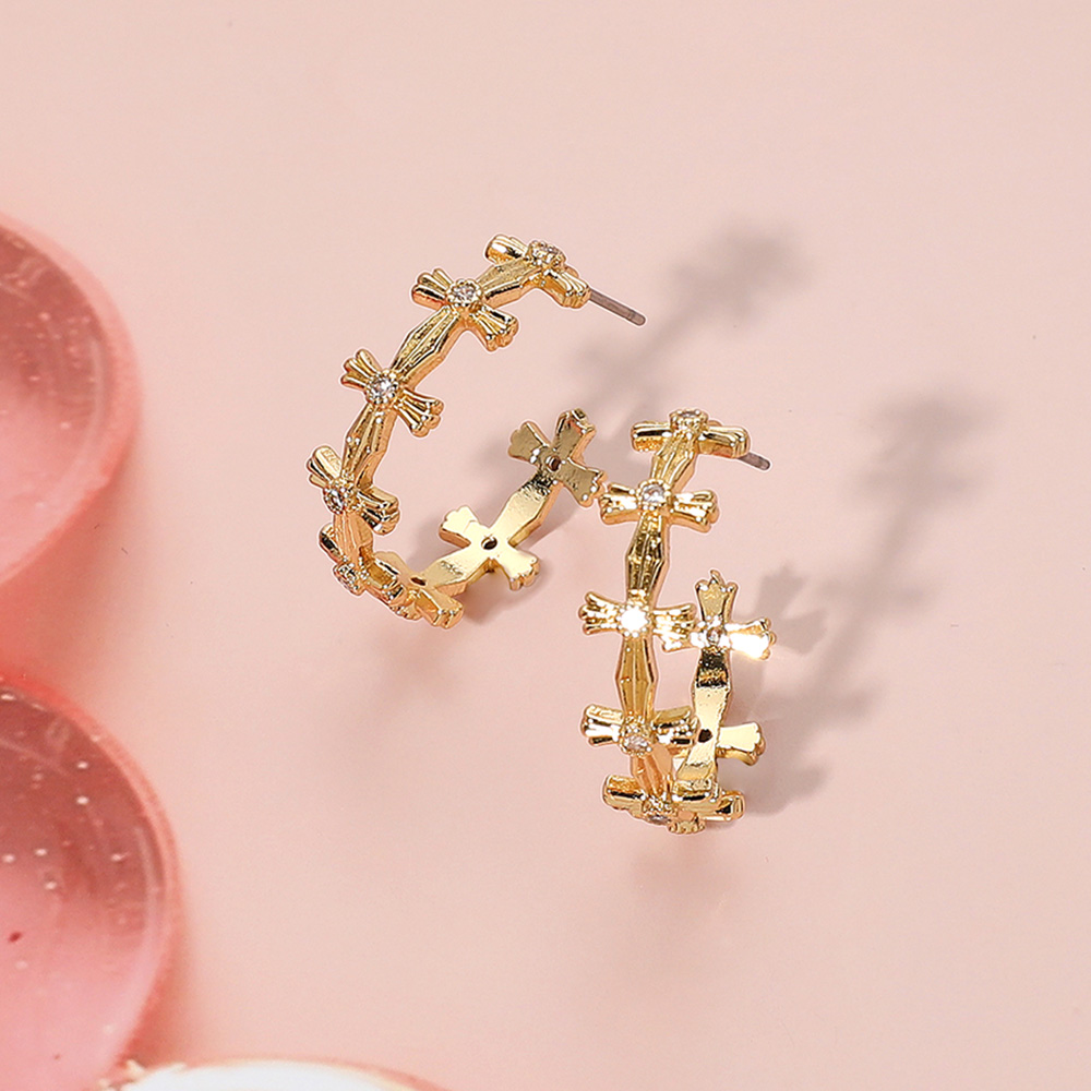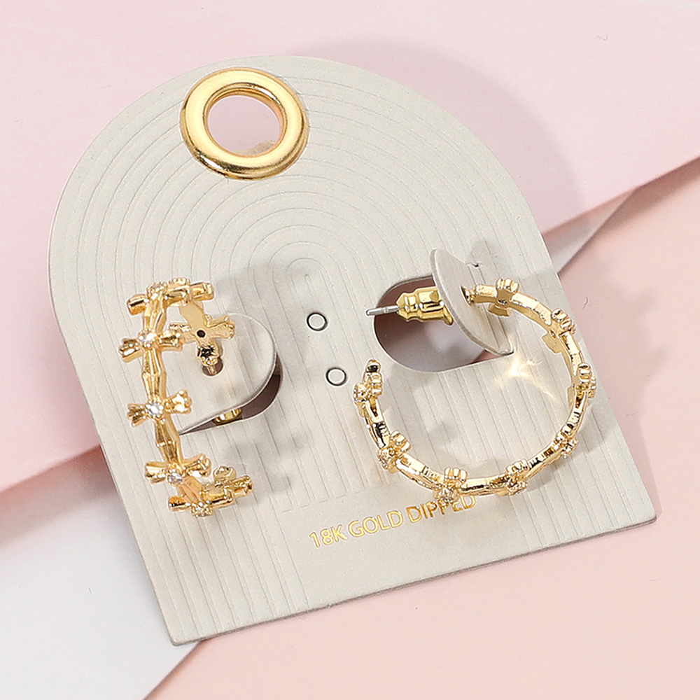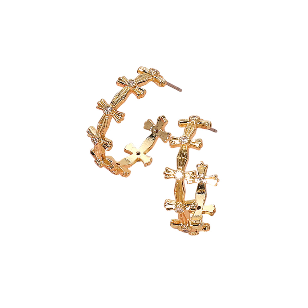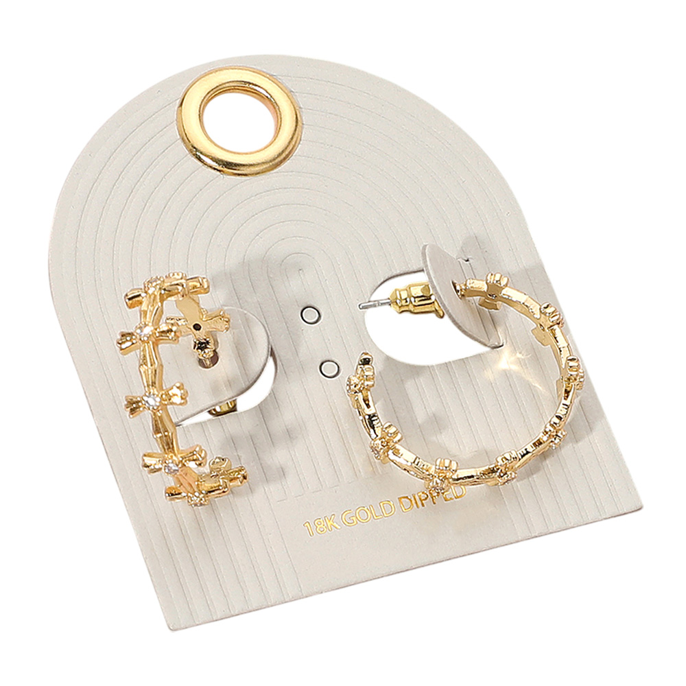 18K Gold Dipped Stone Pointed Cross Hoop Earrings