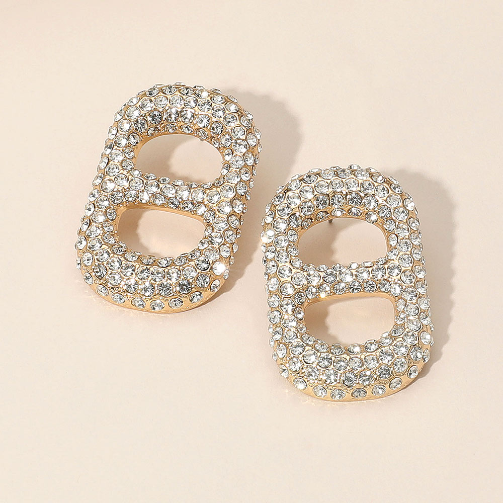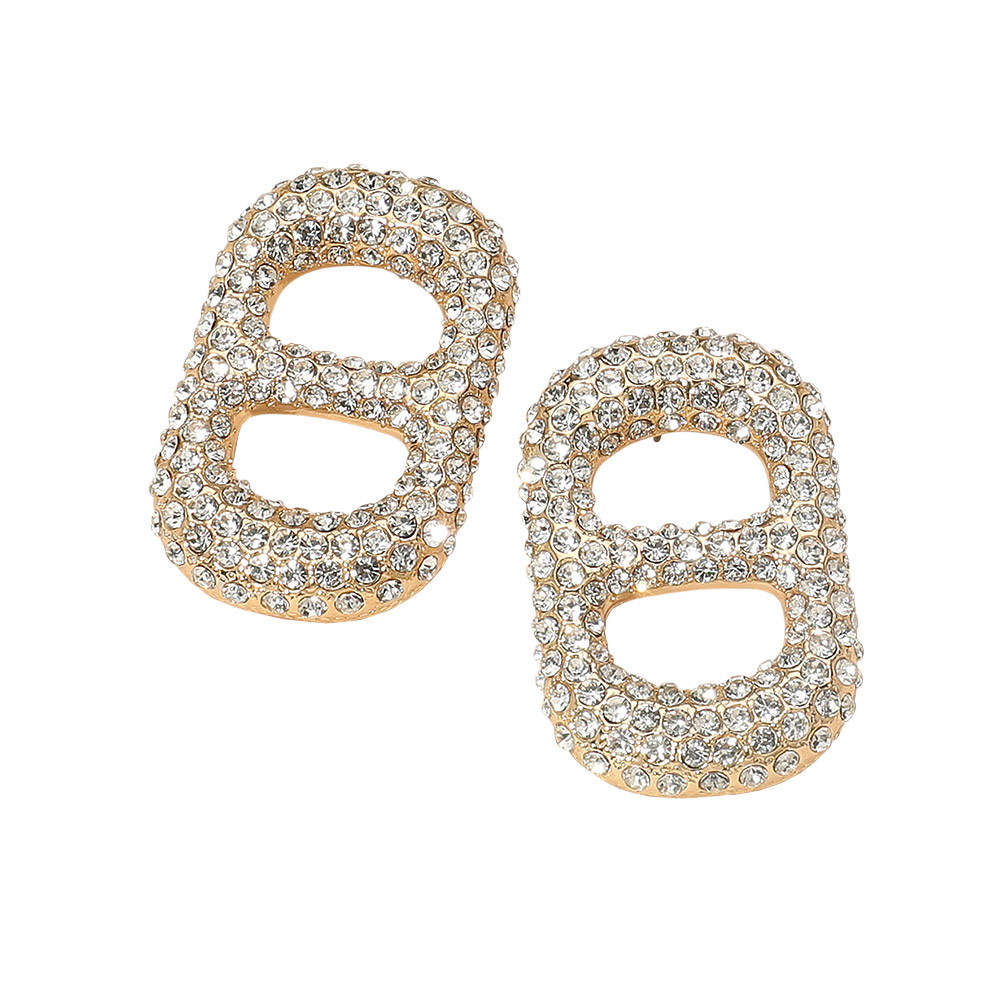 Details • Size : 1" X 1.6" • Post Back • Make a bold style statement with these oval rhinestone earrings encrusted in shimmering stones. Perfect for evening wear, parties, and glamorous occasions, these dazzling earrings elevate any outfit with instant sparkle and chic elegance. • Lead and Nickel Compliant