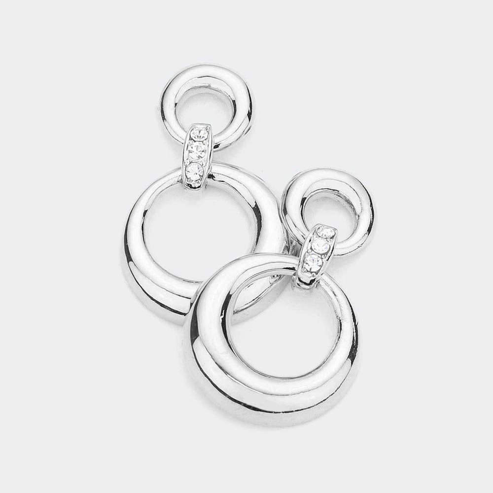 Crystal Detail Double Metal Door Knocker Hoop Earrings