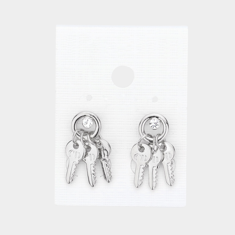 White Gold Dipped CZ Stone Paved Bow Stud Earrings