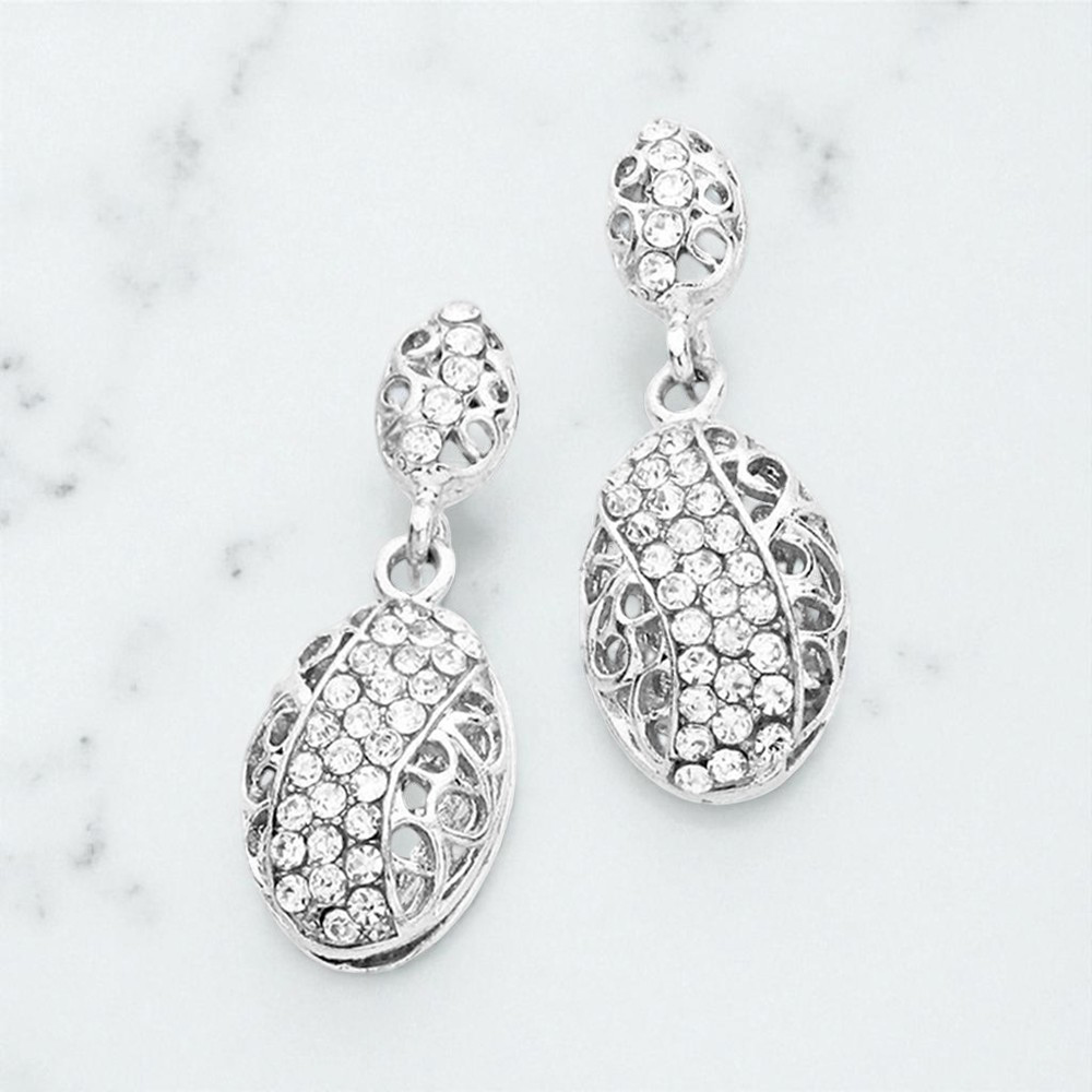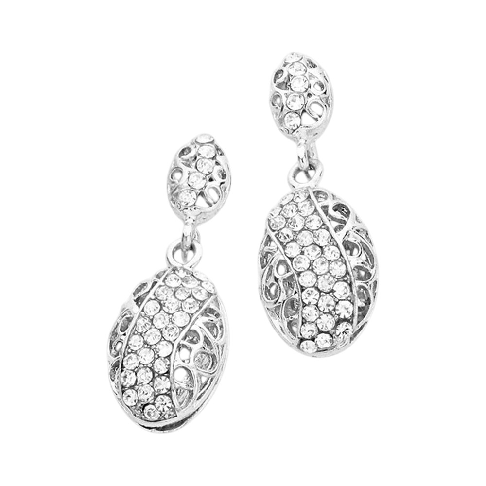 Filigree Rhinestone Pave Teardrop Earrings