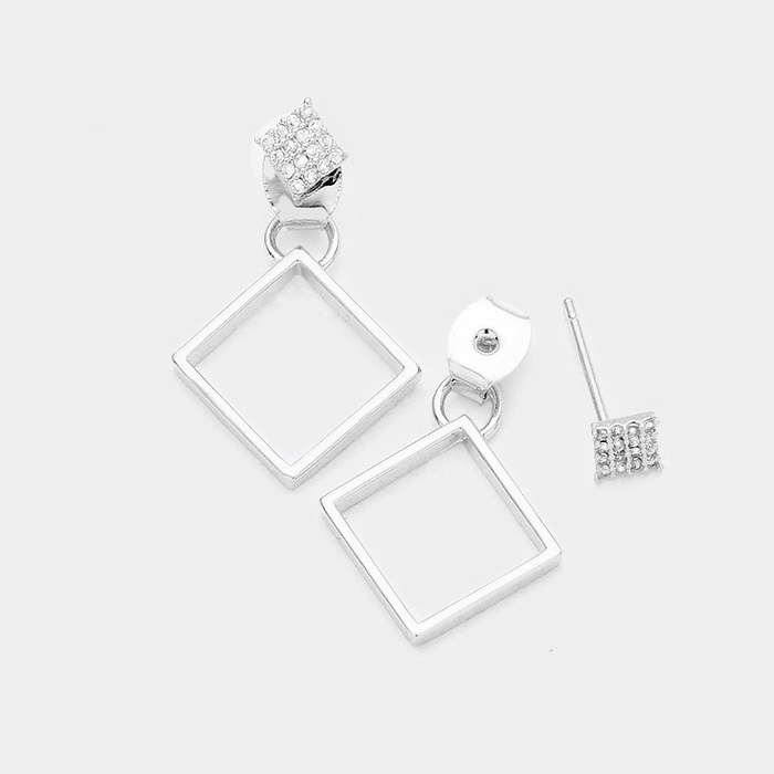 Cubic Zirconia Metal Square Earrings