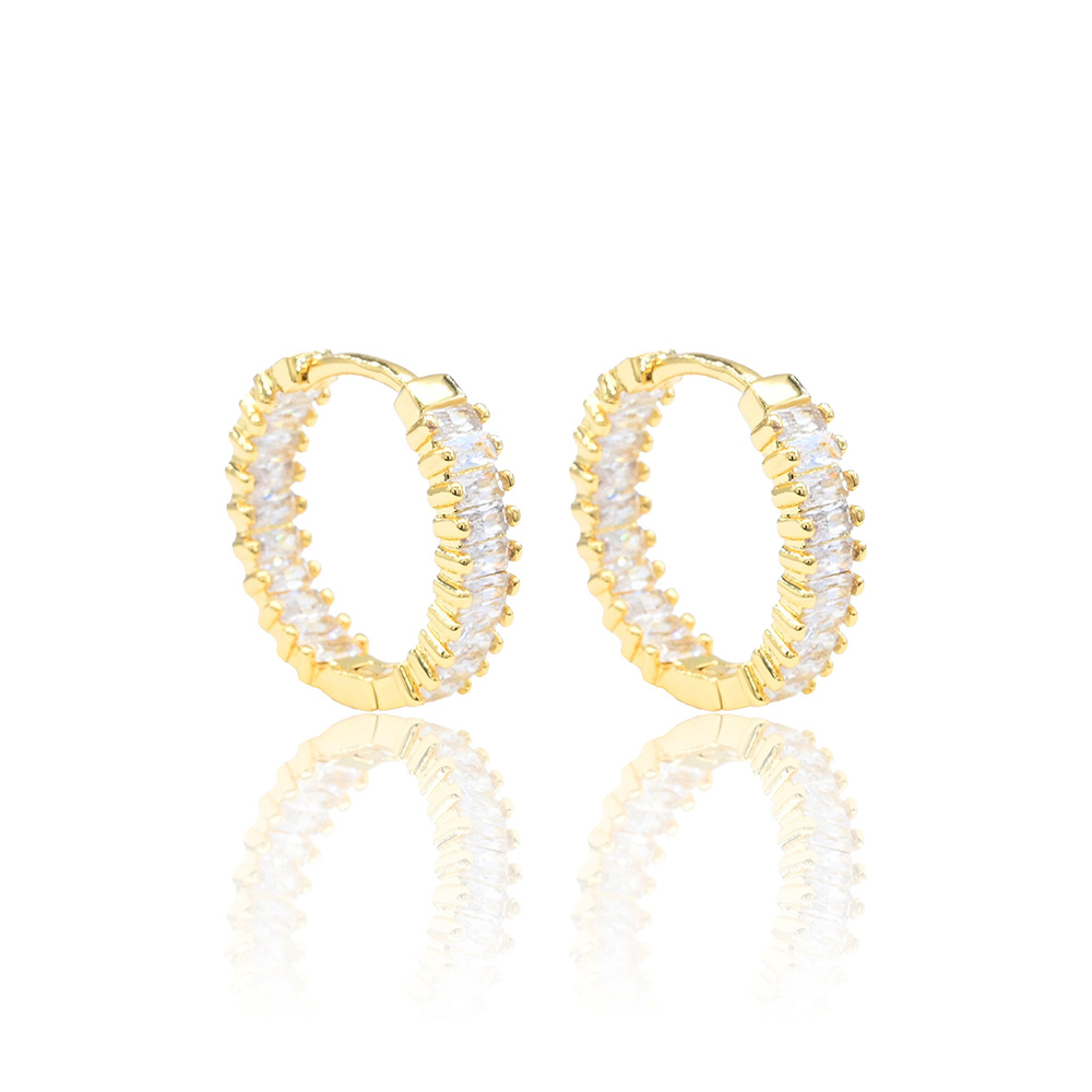 Gold Dipped Baguette CZ Stone Huggie Hoop Earrings