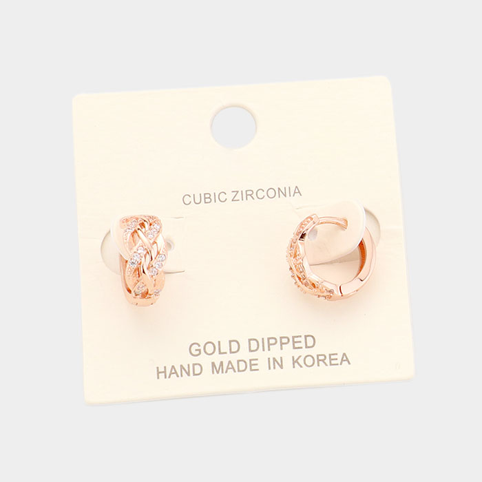 Gold Dipped Cubic Zirconia Braid Huggie Earrings