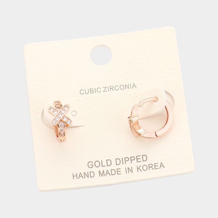 Gold Dipped Cubic Zirconia Crisecross Huggie Earrings