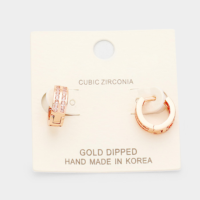 Gold Dipped Cubic Zirconia Huggie Hoop Earrings