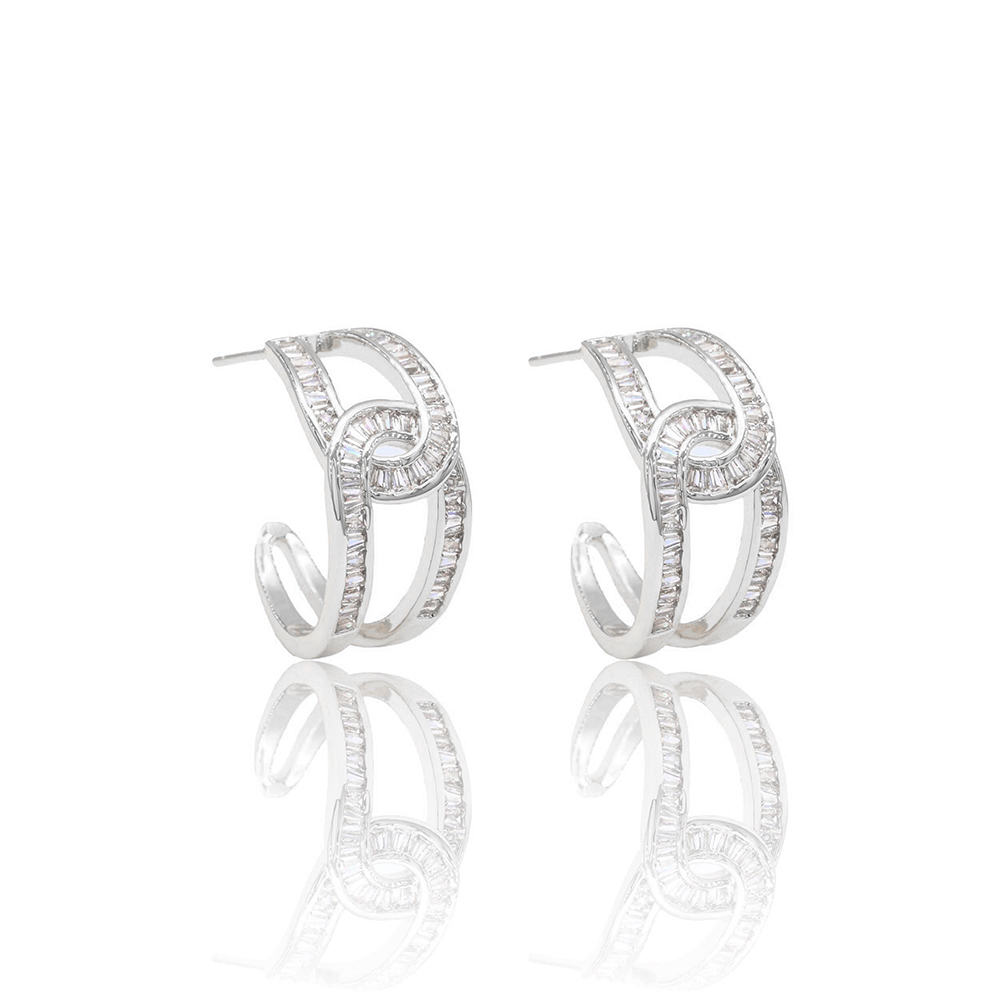 Gold Dipped CZ Baguette Stone Swirl Link Hoop Earrings Gold Dipped CZ Baguette Stone Swirl Link Hoop Earrings