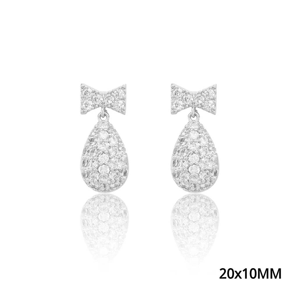 Gold Dipped CZ Stone Paved Bow Teardrop Dangle Earrings