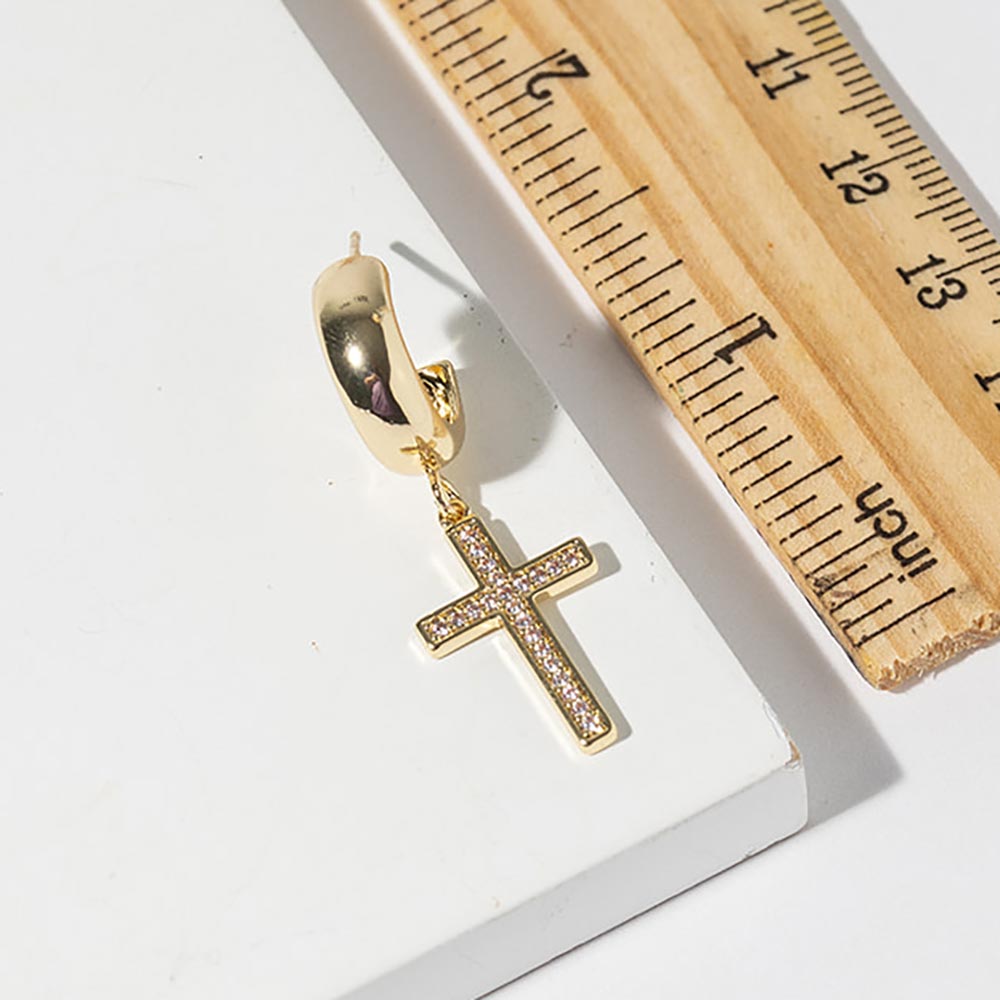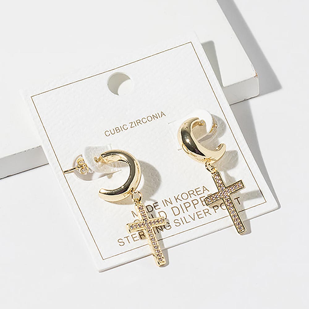 • Stylish cross drop hoop earrings designed with a smooth curved hoop and a sparkling pavĂ© cross charm. This modern yet timeless design adds meaningful detail and visual interest, making it ideal for everyday wear, layered looks, or curated boutique jewelry collections focused on trend-forward elegance.