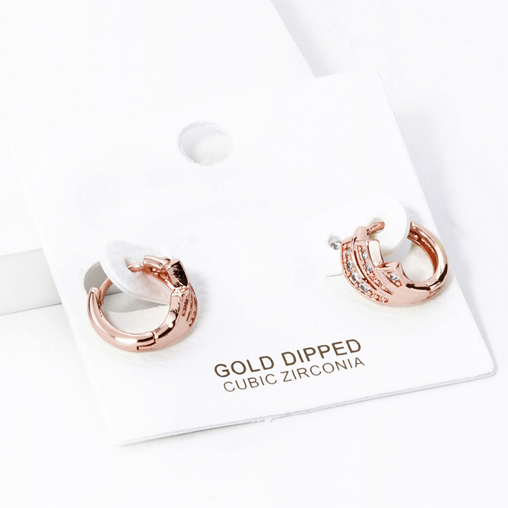 Gold Dipped CZ Stone Paved Huggie Hoop Earrings