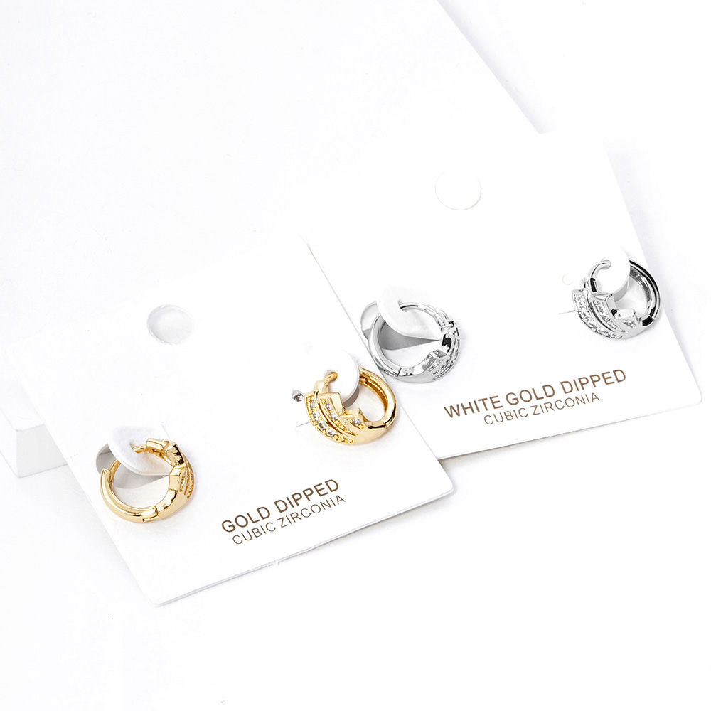 White Gold Dipped CZ Stone Paved Huggie Hoop Earrings