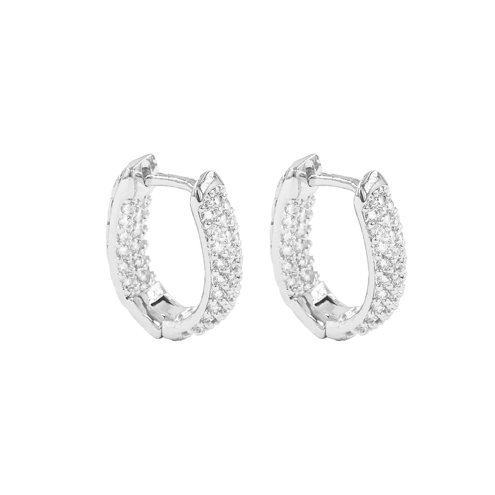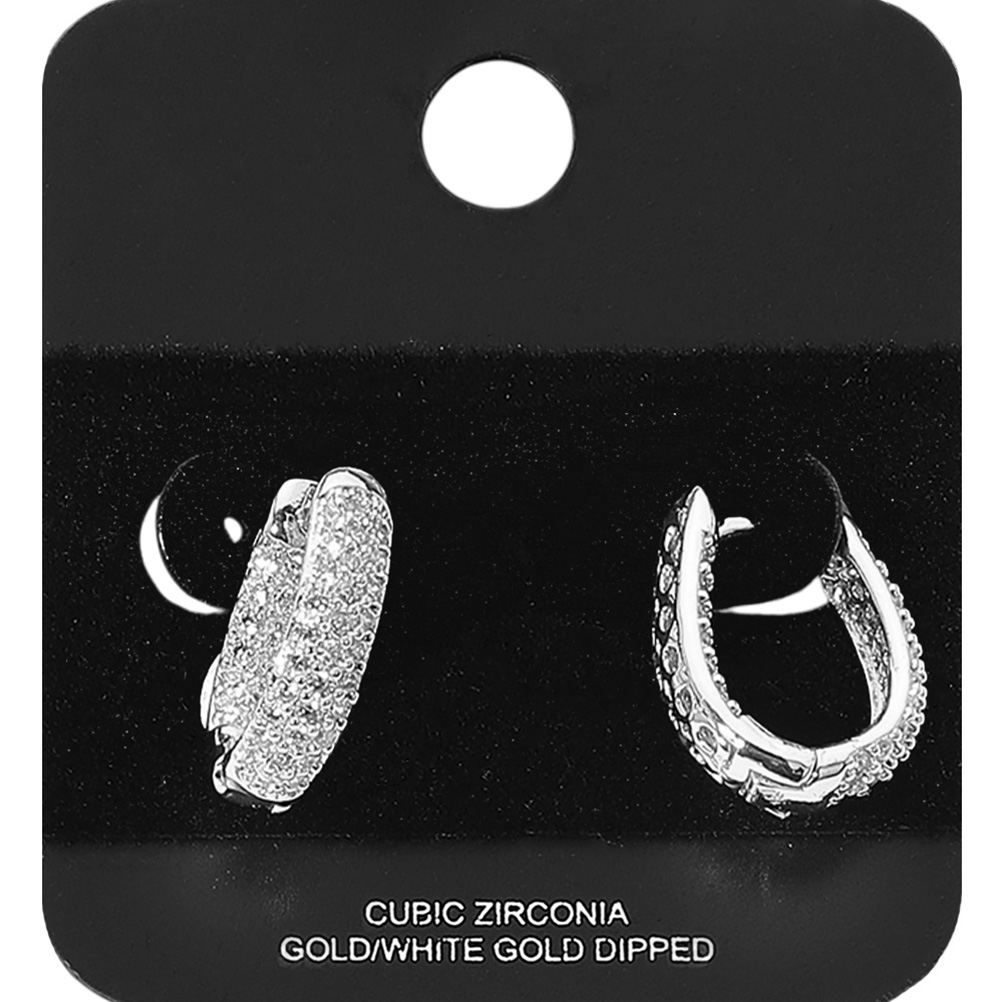 Gold Dipped CZ Stone Paved Oval Huggie Hoop Earrings