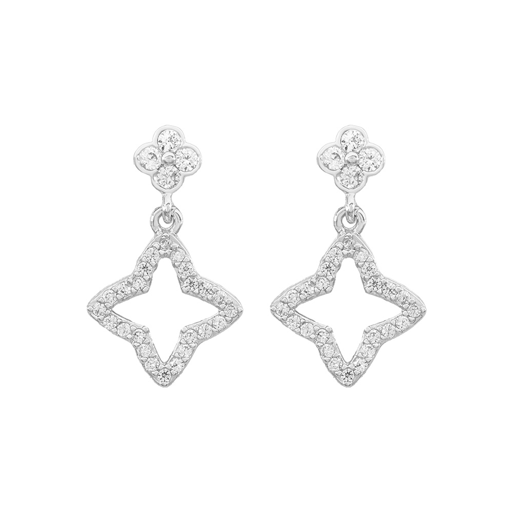 SECRET BOX_Sterling Silver Dipped CZ Clover Key Stud Earrings