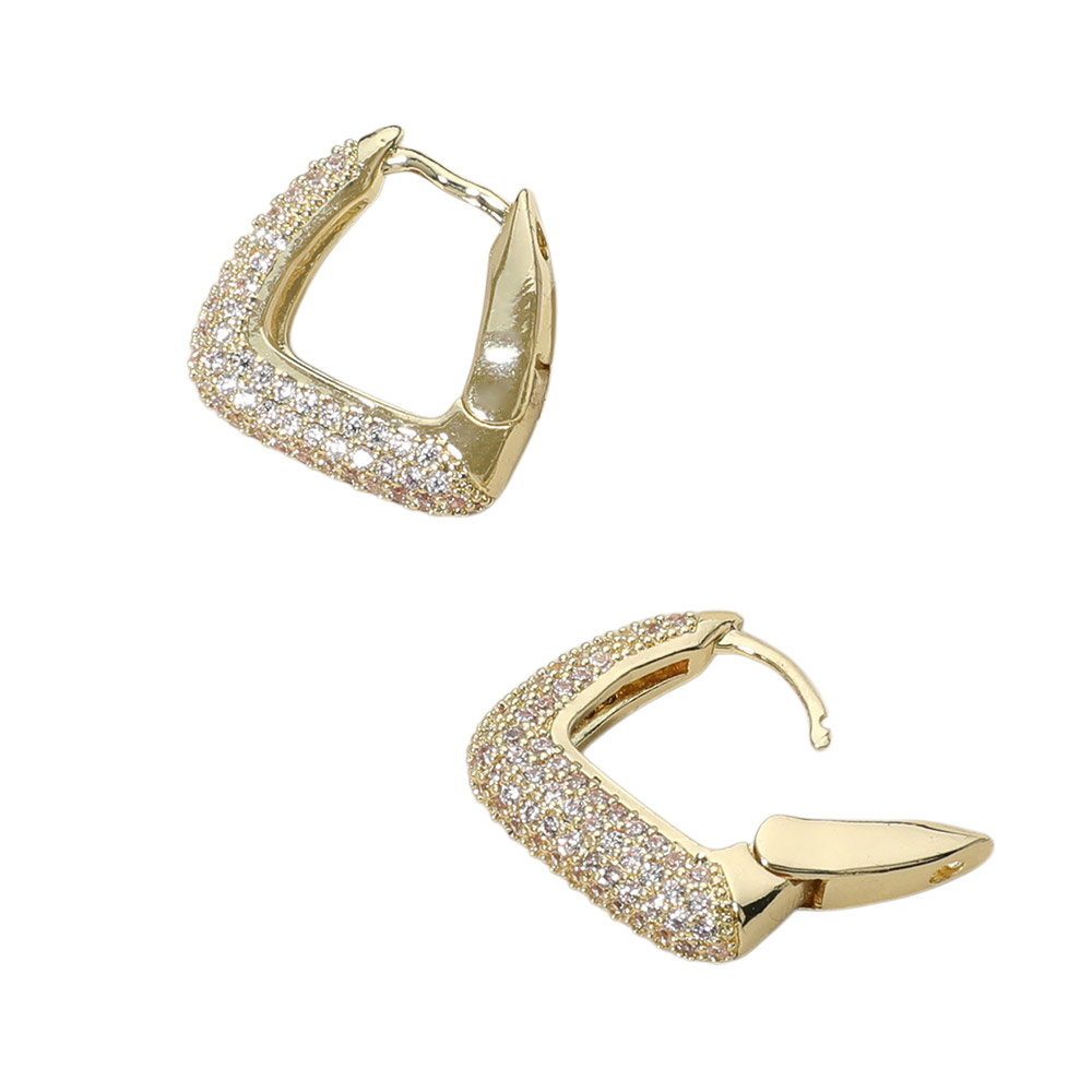 Gold Dipped CZ Stone Paved Square Huggie Hoop Earrings