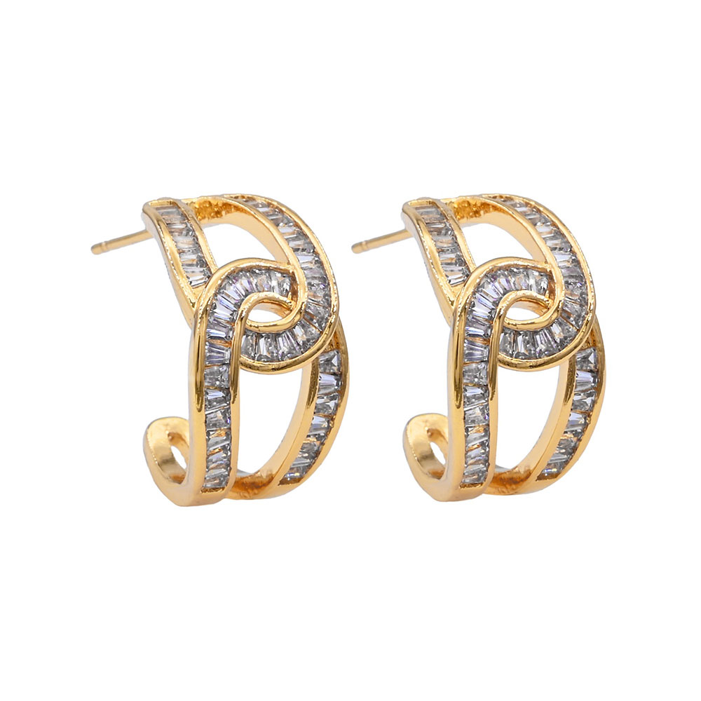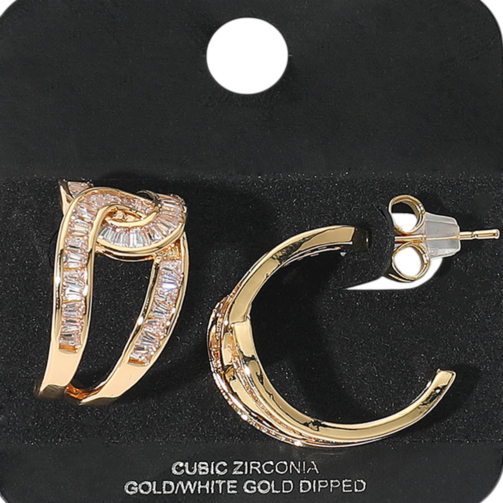 Gold Dipped CZ Stone Paved Twist Knot Hoop Earrings