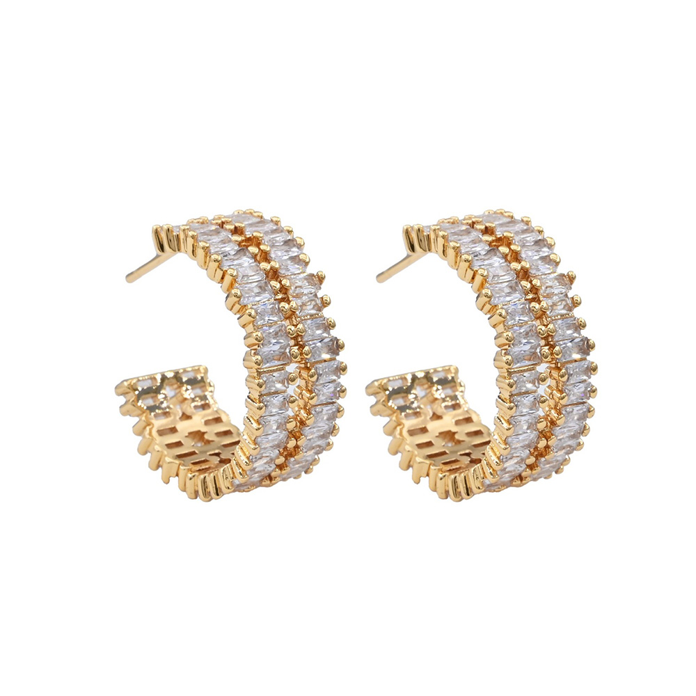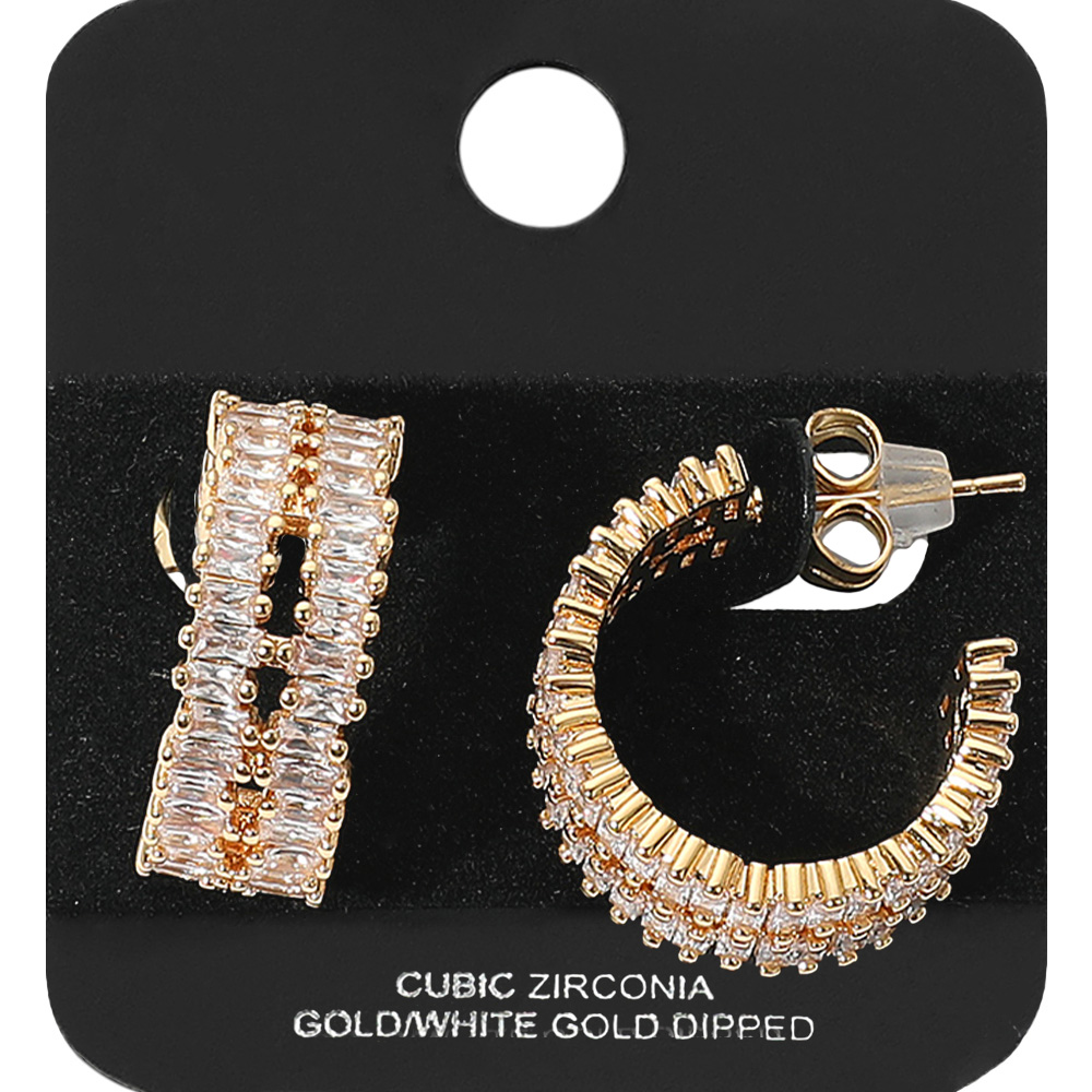 Details • Size : 1.2" X 0.8" X 0.3" • Post Back • Bold and elegant, these wide hoop earrings feature rows of baguette-cut cubic zirconia set in a structured design. Perfect for adding high-shine glamour, they bring modern sophistication to both day and evening styles with a striking, radiant finish. • CZ Cubic Zirconia • Gold Dipped • Lead and Nickel Compliant