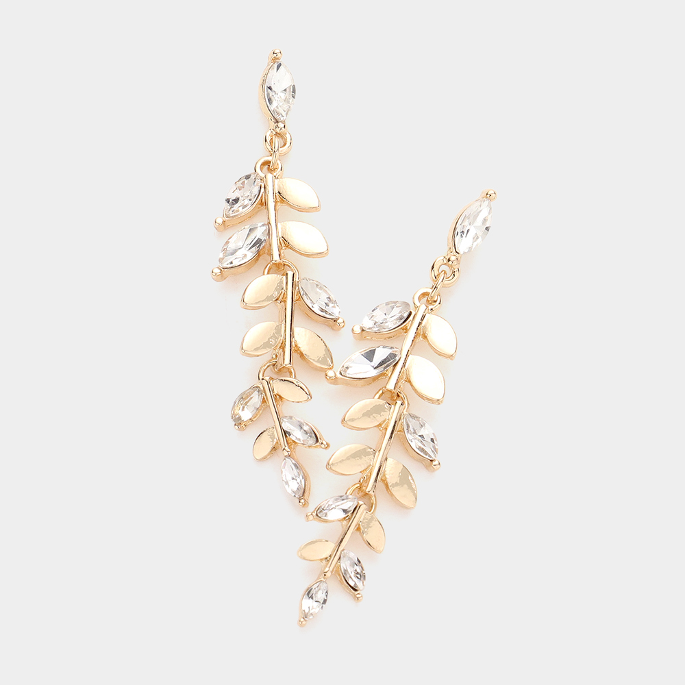 Marquise Stone Accented Leaf Cluster Vine Dangle Earrings