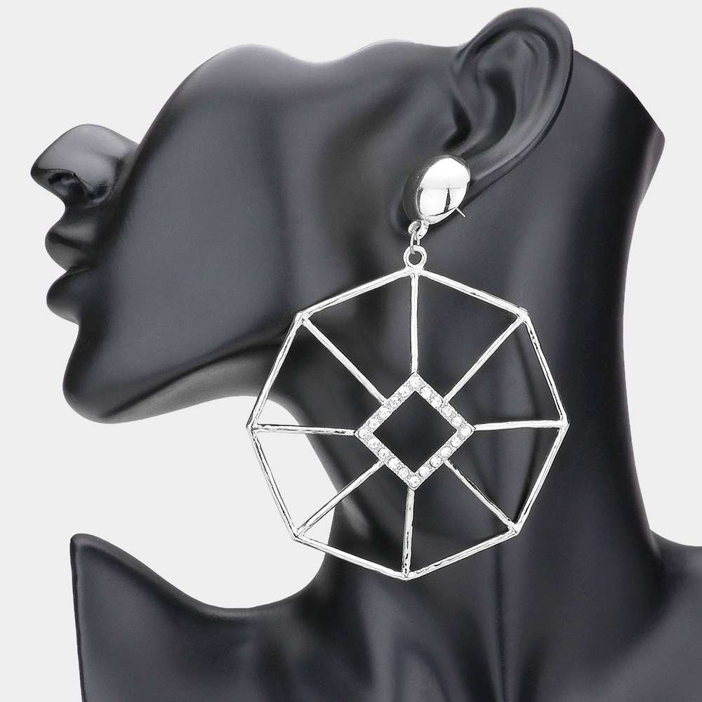 Teardrop Glass Stone Drop Stone Paved Swirl Evening Earrings