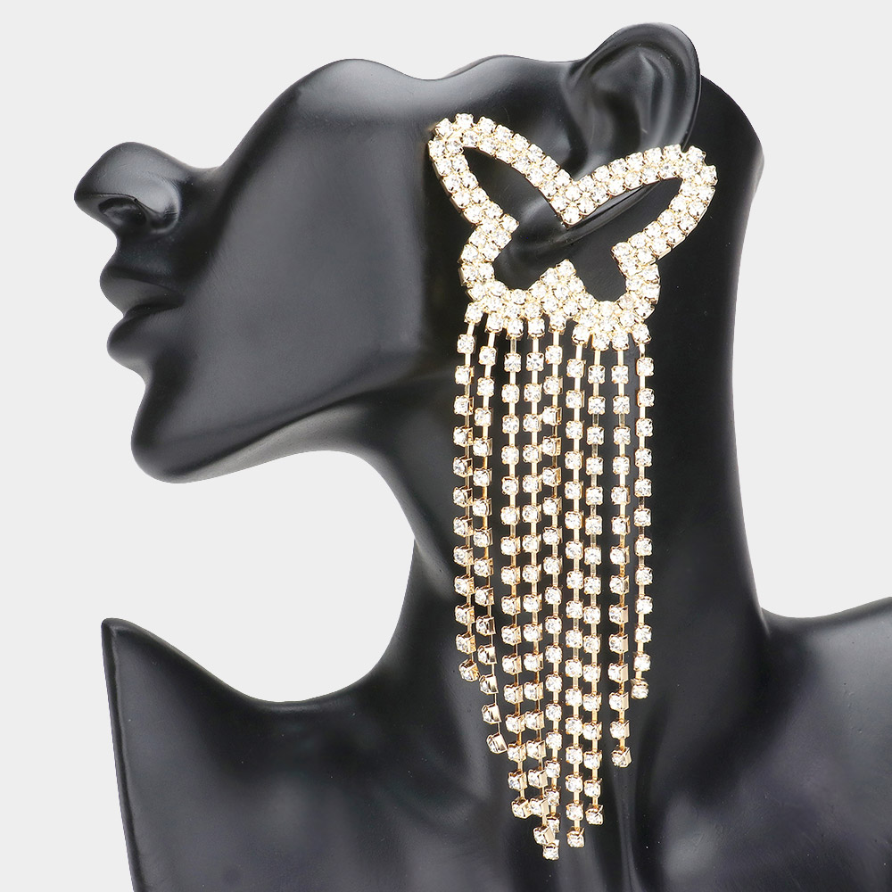 Oversized Rhinestone Paved Butterfly Fringe Earrings