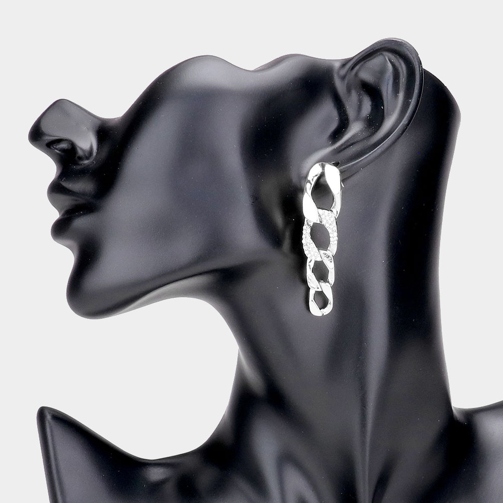 Rhinestone Embellished Chain Link Earrings